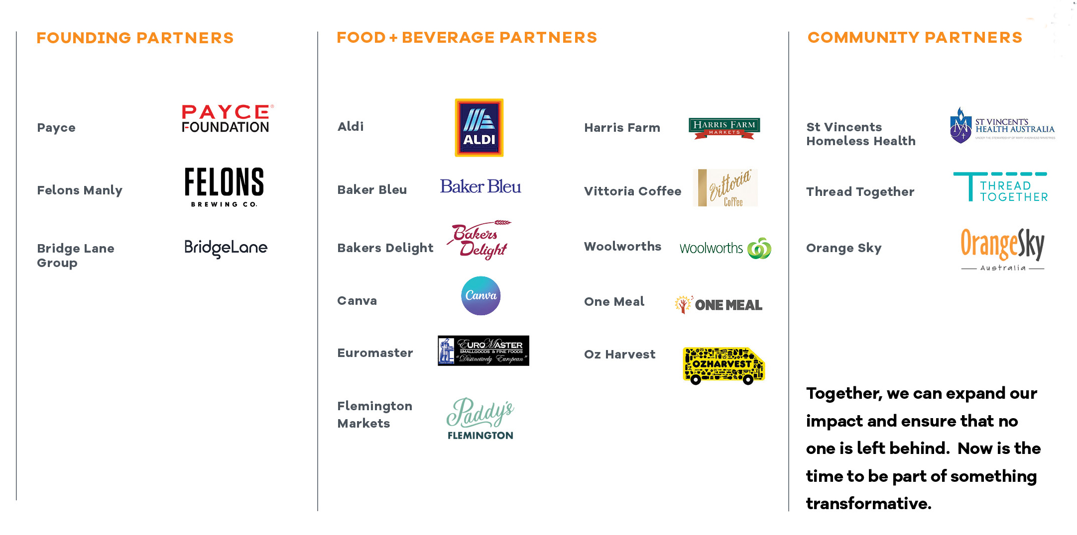 At St Canice’s, we believe in the power of community. Whether you’re a local business, organisation, or individual, there are many meaningful ways to partner with us. From donating food or beverages to support our kitchen, to offering services that benefit those doing it tough, we welcome all partnership opportunities. Together, we can make a real difference.