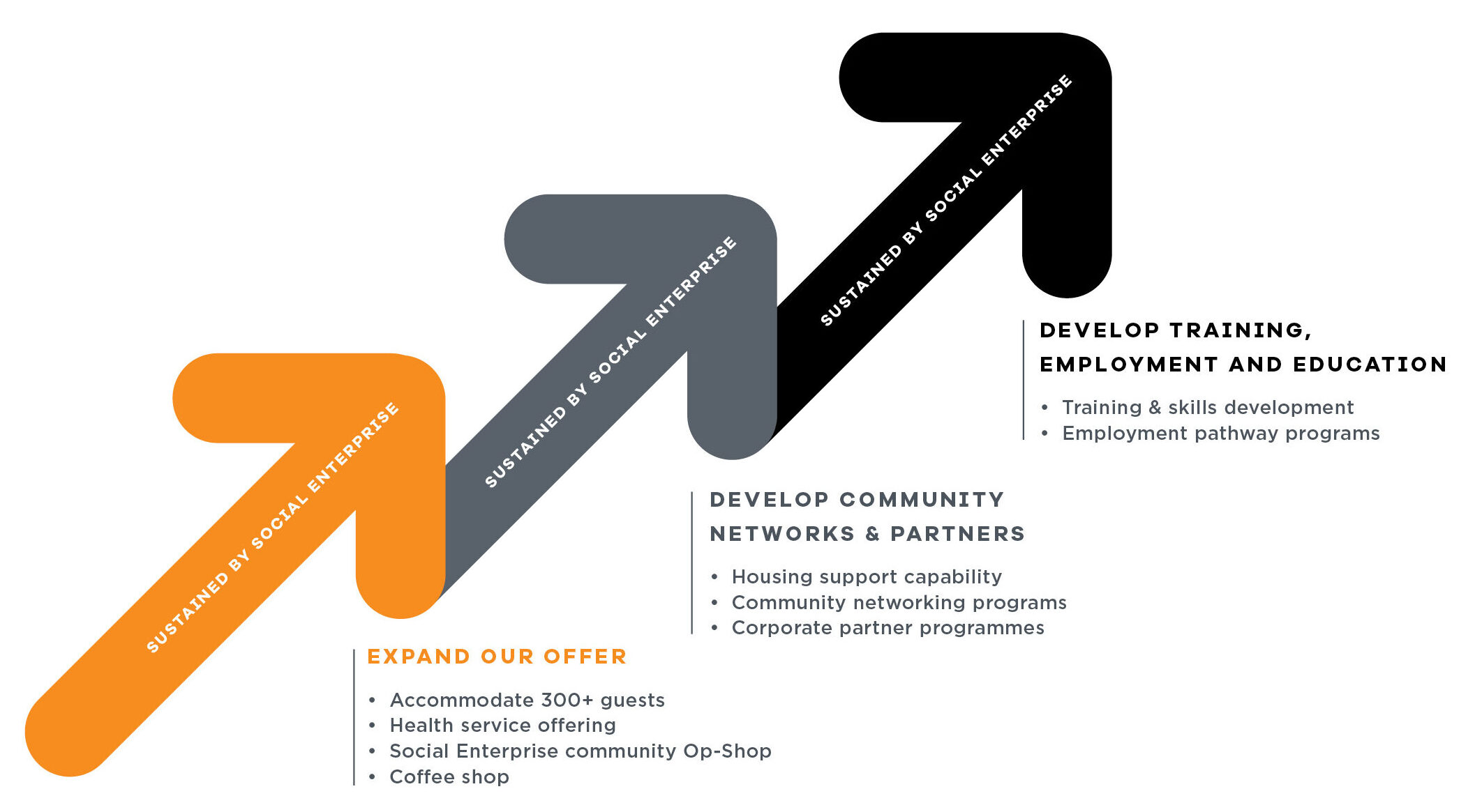 Payce Foundation has generously agreed to fund the construction costs of the new kitchen. Funding is still needed to secure other costs (eg increased food costs, furniture, plates, cutlery etc).